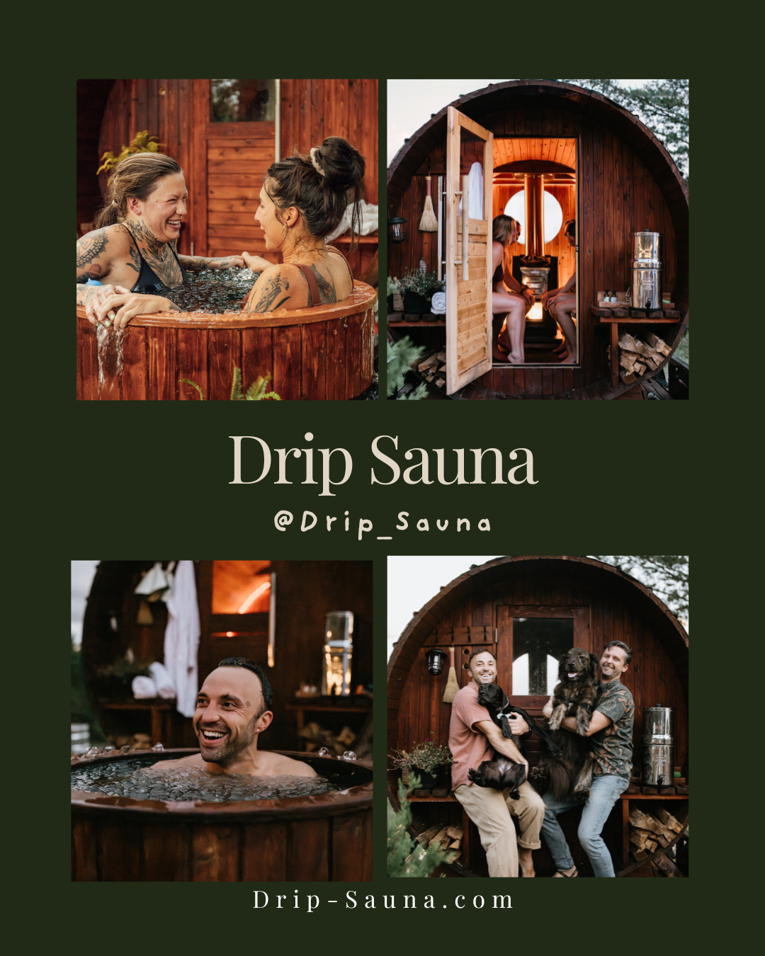 Drip Sauna is Asheville’s wood fired sauna, cold plunge, and community wellness experience. Known for its outdoor setting and social atmosphere, Drip offers daily drop in sessions, private bookings, weekly community events, and site rentals for large groups.