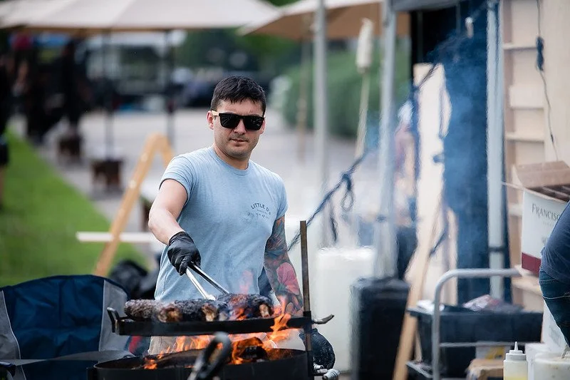 If you’ve never been to Heritage Fire Asheville, picture this: a field full of fire‑kissed meats, seasonal sides, and bold, smoky flavors — all served outdoors at the beautiful Horse Shoe Farm (which is actually located in Hendersonville), with the Blue Ridge Mountains as your backdrop.